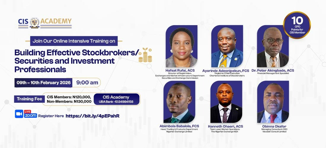 First known as the Nigerian Institute of Stockbrokers, the Chartered Institute of Stockbrokers has been in existence since 1990.